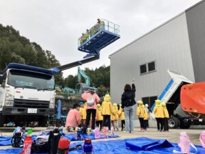 2025年11月13日(木)、 伊賀営業所に猪田保育所のきぐみ・あおぐみの皆さんが、職場見学に来られました。 建設機械の…