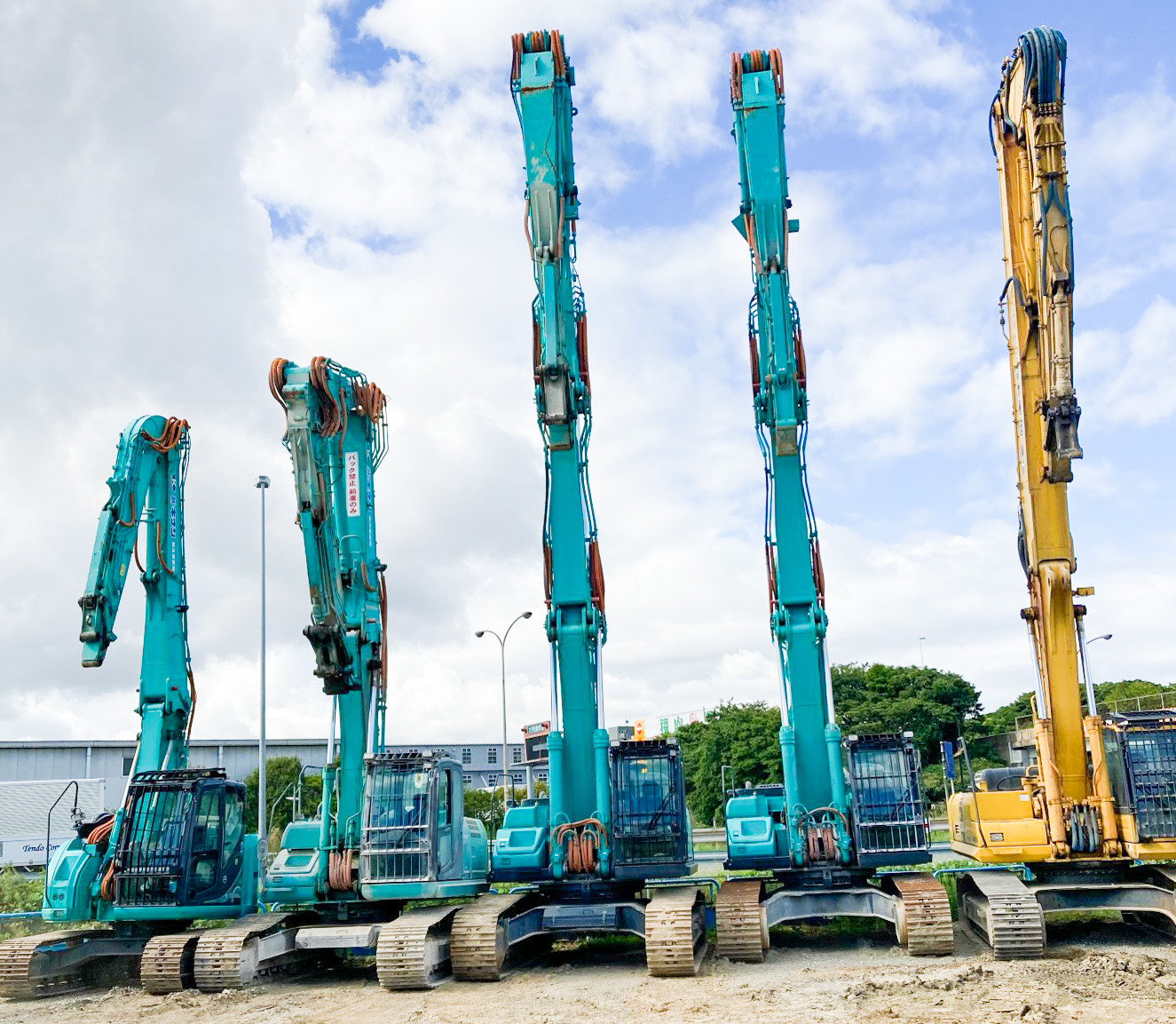 高所・橋梁点検事業部である福岡営業所も併設されており、ヤードでは多様な機械が見られます