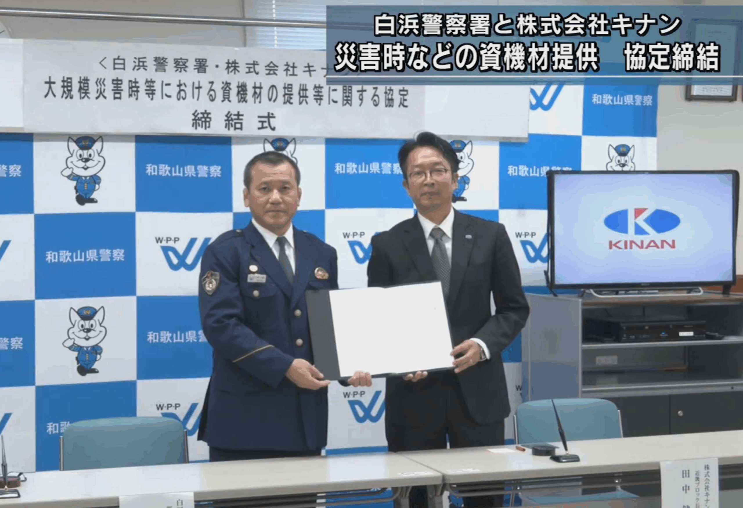 和歌山県白浜警察署と『大規模災害などの発生時における資機材の提供等に関する協定』を締結しました。