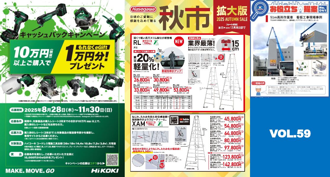 20%軽量化された新製品『薄くて軽い長尺スリム脚立・RLシリーズ』を含むチラシが届きました。