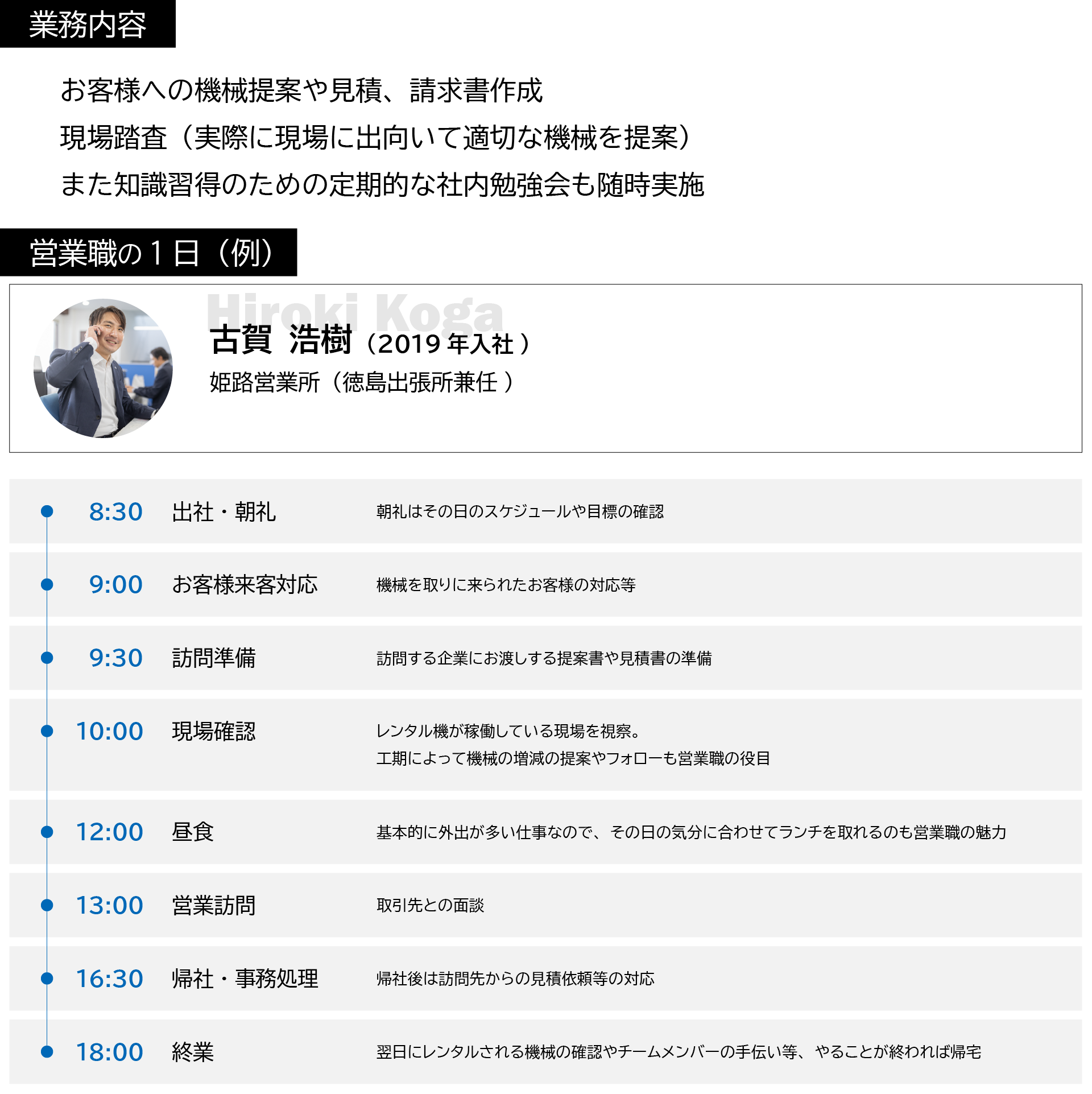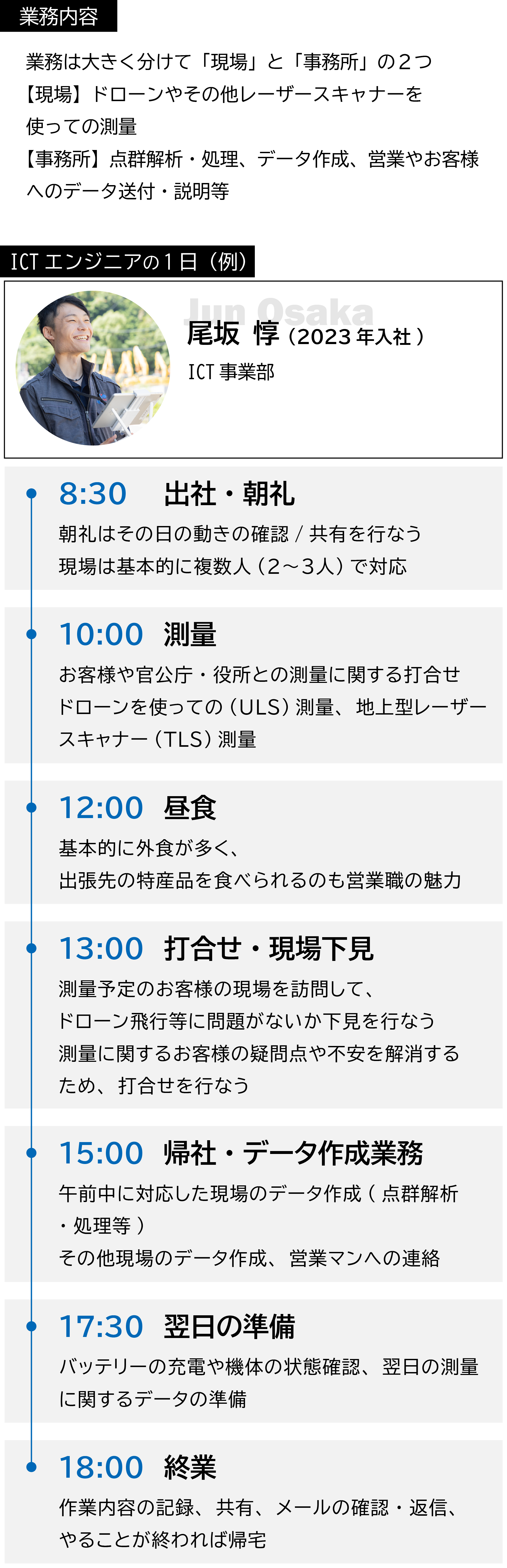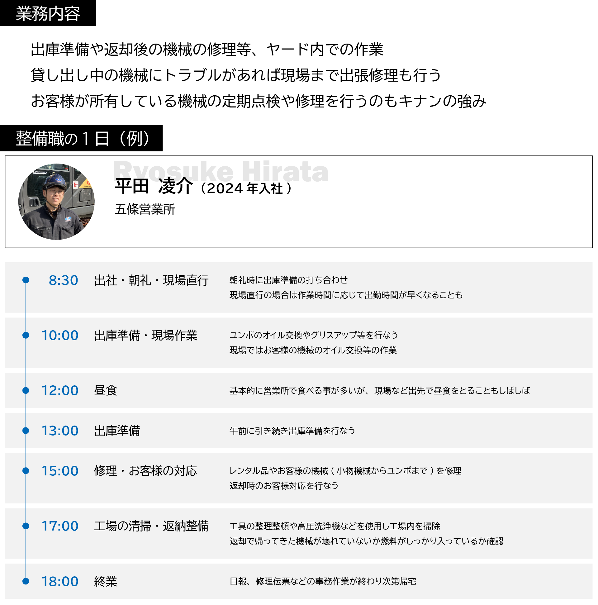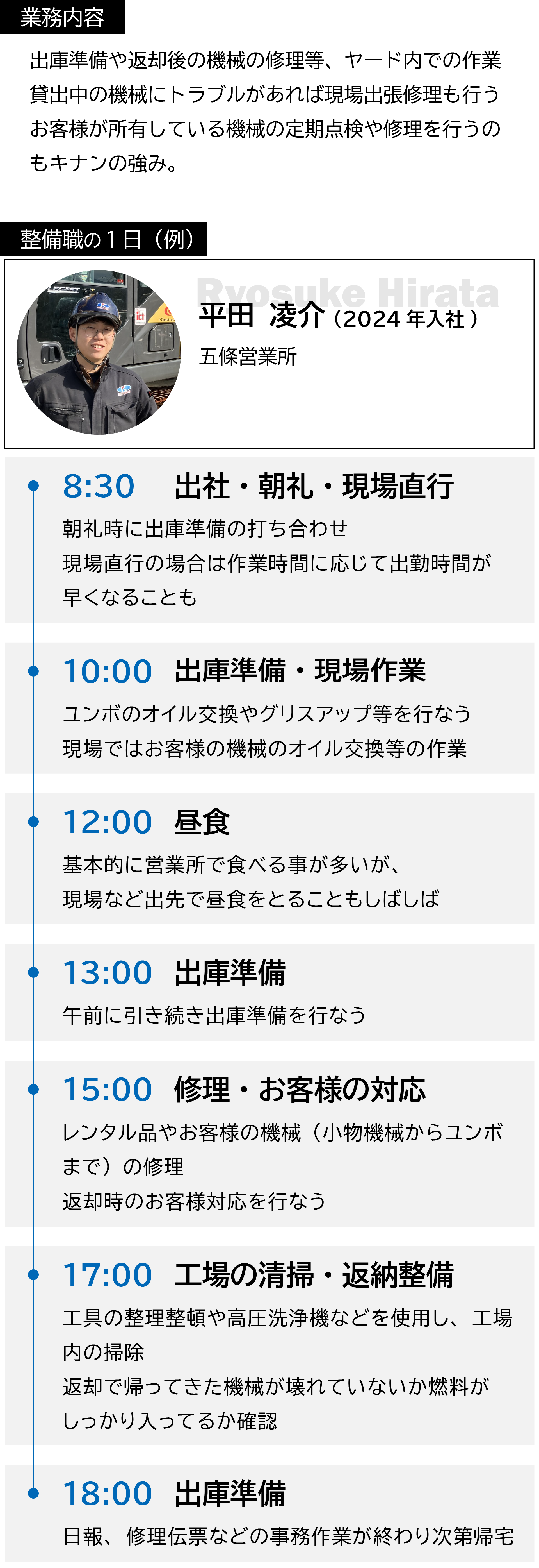 現場最前線の『営業』『整備』『ICTエンジニア』という3つの役割。どれもAIやロボットには置き換えられない「人の力」を発揮することで価値が見出される仕事です。そんな自分力を高められる場所がキナンにはあります。